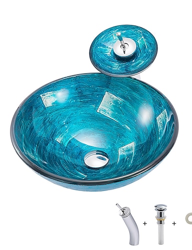 раковина для ванной комнаты / смеситель для ванной комнаты / монтажное кольцо для ванной комнаты умывальник для умывальника - раковина с круглым сосудом из закаленного стекла