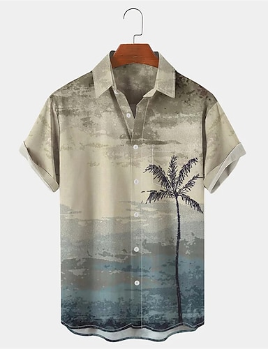 Муж. Кокосовая пальма Повседневная рубашка Гавайская рубашка Рубашка Алоха С короткими рукавами Гавайский Прибегнуть Отпуск Повседневные Лето Весна Воротник-стойка Кнопка вверх