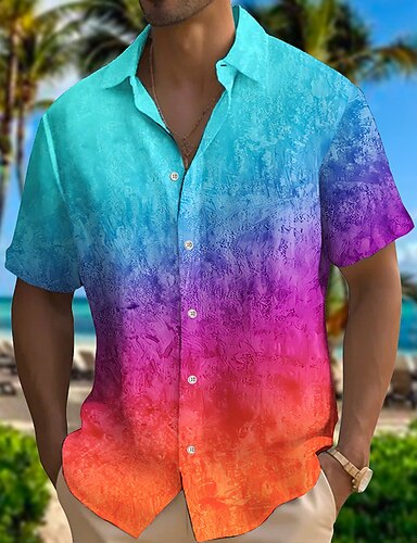 Муж. Градиент Геометрический рисунок Рубашка Кнопка рубашка С короткими рукавами Мода Оригинальный рисунок На каждый день на открытом воздухе Повседневные Лето Весна Отложной С принтом Розовый Синий