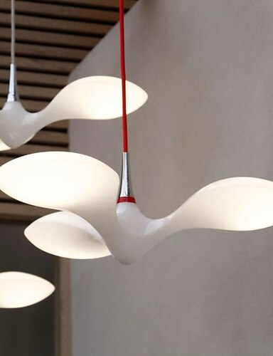 светодиодные подвесные светильники, белый свет в форме чайки, столовая, подвесной светильник, люстра, лестница, холл, гостиная, кухня, освещение с высокими потолками, освещение в отеле, птица, железо