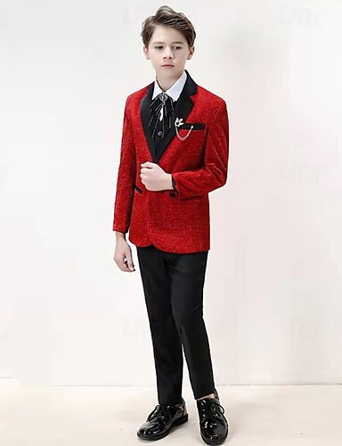 4 предмета Детский праздничный костюм Мальчики Дети Костюм Строгий костюм Блейзер, брюки, рубашки и галстук Официальные Для вечеринок Валентинки Мода Круто Сплошной цвет Карман Винный Полиэстер