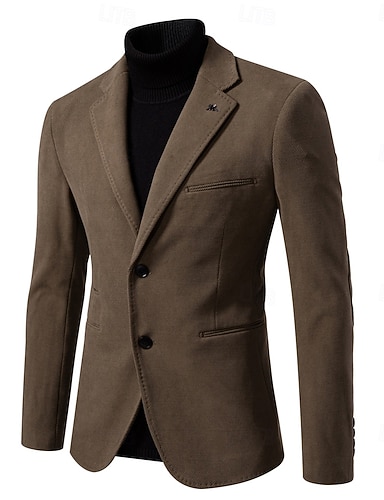 Муж. Пиджак Школа Официальные Выступление Классика Весна Осень Полиэстер Спандекс Сплошной цвет Однобортный с 2 пуговицами Блейзер Черный Коричневый Хаки