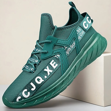 Мужские зеленые спортивные кроссовки с ярким дизайном и надписями — удобные, легкие, идеально подходят для бега, занятий в спортзале и активного образа жизни.