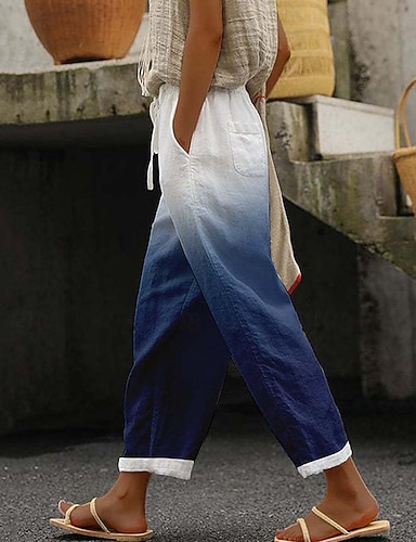Жен. Брюки, вдохновленные льном Широкие Брюки Этнический стиль На каждый день Богемный Полная длина Завышенная Градиент Карман Эластичная талия Рисунок Воздухопроницаемость Мягкий Слабоэластичная