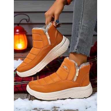 Женские оранжевые теплые зимние ботинки – водонепроницаемая зимняя обувь с подкладкой из искусственного меха и боковой молнией для Хэллоуина, улицы и повседневной носки