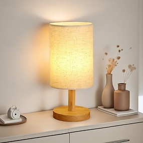 настольная лампа, небольшая прикроватная лампа, ночник с основанием из натурального круглого дерева &ночник с абажуром из льняной ткани, работающий от USB, для спальни, гостиной, детской комнаты