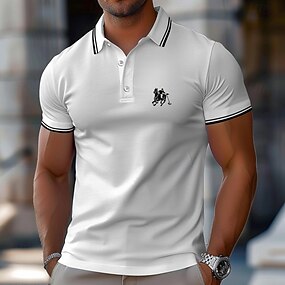 Муж. Лошадь Поло С короткими рукавами Футболки поло Рубашки с воротником Деловая одежда Школа на открытом воздухе На каждый день Домашняя одежда 3D печать Лето Весна Осень Белый Темно-синий