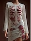 Жен. Мини-платье Облегающий силуэт Платье-футболка Платье-футляр Отпуск На каждый день Для вечеринок Стандартный Графика Черепа Длинный рукав Вырез под горло Белый Весна Осень Зима