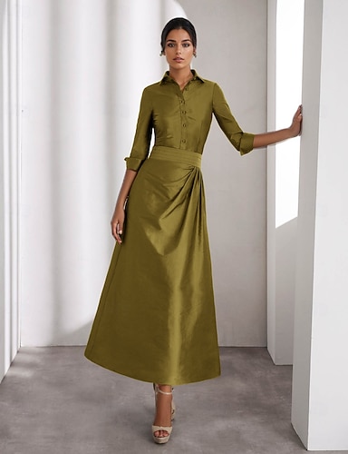 Платья-карандаш для матери невесты A-Line Коктейльные платья Элегантные Формальные Гостевые Длина щиколотки Длинный рукав Рубашечный воротник Тафта с разрезом