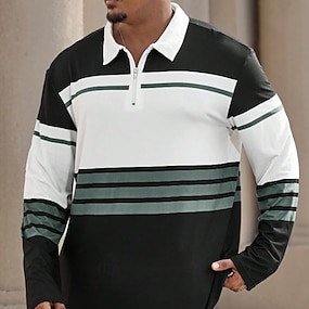 Муж. Полоски Поло на молнии Длинный рукав Отложной Спорт На каждый день на открытом воздухе Для занятий спортом На каждый день Молния Весна Осень Зима Черный