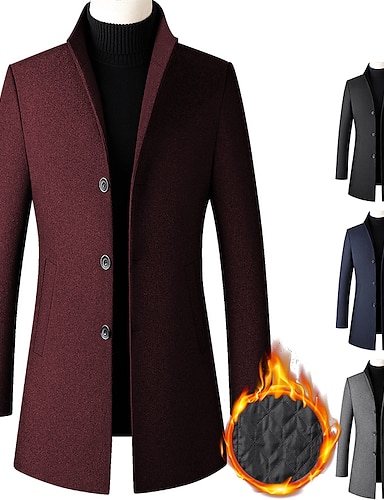 Муж. Зимнее пальто Шерстяное пальто Пальто Бизнес На каждый день Зима Шерсть Сохраняет тепло На открытом воздухе Верхняя одежда Одежда Мода Наколенники Однотонный Карман Лацкан Однобортный с 2