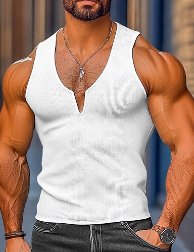 Муж. Вафельная майка Безрукавка Жилет Майки Без рукавов V-образный вырез Лето Полотняное плетение Мода Классика Удобный Для улицы Повседневные Спорт Белый Желтый Синий Футболка для мужчин