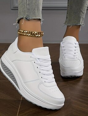 женские кроссовки на платформе – стильные белые туфли на шнуровке с воздушной подушкой для прогулок и повседневной носки