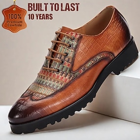 мужские оксфорды с узором «гусиная лапка» — винтажный коричневый и красный клетчатый узор, вставки из искусственной кожи, идеально подходят для официальных и повседневных случаев
