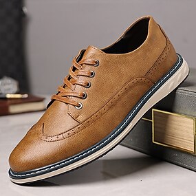 Муж. дерби Для прогулок На каждый день Полиуретановая кожа Ткань Удобный Против скольжения Дышащий Шнуровка Желтый-коричневыйM Черный Белый Осень Зима