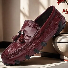 мужские бордовые туфли с крокодиловым узором, кисточками и нескользящей подошвой — роскошные туфли без застежек для повседневного и официального ношения