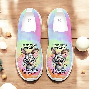 женские кроссовки-слипоны с пасхальным кроликом в технике тай-дай — легкая спортивная обувь Flyknit, идеально подходящая для повседневной носки и праздничного отдыха