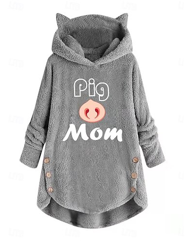 Жен. Толстовка с капюшоном и пуловером Буквы На каждый день Длинный рукав Капюшон Укороченные топы Для улицы На каждый день Повседневные Карман С принтом Черный Розовый Винный Серый Осень Зима