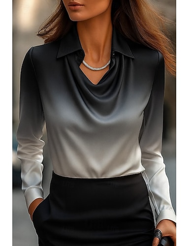 Жен. Рубашка Омбре Графика Элегантный стиль Стиль На каждый день Длинный рукав Вырез-хомут Обычные топы Офис Вечерние наряды Повседневные Рюши Драпировка Желтый Синий Лиловый Оранжевый Лето Осень
