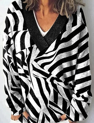 Жен. Толстовки Геометрический принт Полоски На каждый день Длинный рукав V-образный вырез Обычные топы Для улицы На каждый день Повседневные Желтый Розовый Синий Лиловый Осень