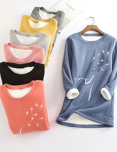 Жен. Большие размеры Пижама-свитшот с флисовой подкладкой Пуловер Толстовка Флисовые рубашки Кот Теплый Активный Пуловер Длинный рукав Круглый вырез "Круглый вырез ""под горло""" Обычные топы