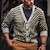 Новогодняя тематика Муж. геометрический Плед / В полоску / Шеврон Вязаная ткань Кардиган V-образный вырез Ретро На каждый день на открытом воздухе Дом Для вечеринок Пряжка Длинный рукав Осень Зима