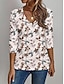 Женская футболка с длинным рукавом V-образный вырез длинная туника графика растения винтажный элегантный богемный винтажные обычные вещи повседневный выходной принт черный белый розовый пыльная роза