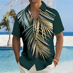 Муж. Пальмовый лист Тропические растения Рубашка Гавайская рубашка Кнопка рубашка С короткими рукавами Гавайский Прибегнуть Отпуск Праздники Одежда для пляжа Лето Весна Отложной 3D