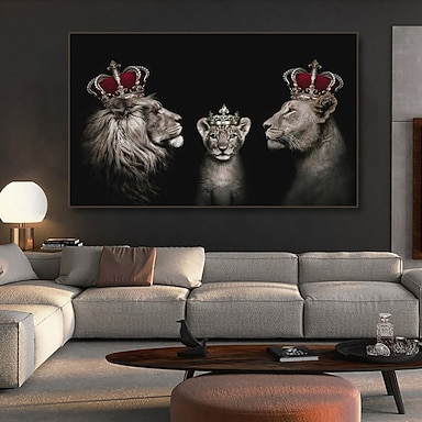 Абстрактная черно-белая семья львов, живопись, корона, львы, холст, постеры и принты, картина для украшения современной гостиной