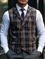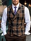 Муж. Жилет Бизнес Свадебные прием Активный Элегантный повседневный стиль Весна Осень Полиэстер В клетку Двубортный крой Рубашечный воротник Тонкие Коричневый Светло-серый Темно-серый Жилет