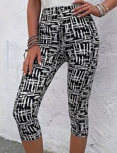 Жен. Брюки-капри Леггинсы Уютные леггинсы Уличный стиль На каждый день До щиколотки Средняя талия геометрический С принтом удобный На открытом воздухе Удобный на открытом воздухе Отпуск На каждый день