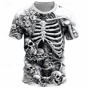 Муж. Графика Черепа Скелет Футболка С короткими рукавами Футболка 3D печать Вырез под горло Рубашка Оригинальный рисунок На каждый день Субкультура Для спорта и активного отдыха Праздники На выход