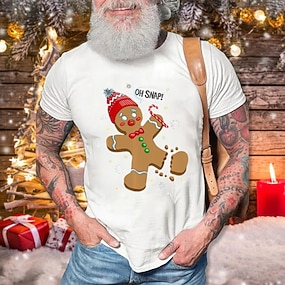 Новогодняя тематика Муж. пряничный человечек Футболка 100% хлопок С короткими рукавами Графика Рубашка Черный Белый Красный Удобная футболка фестиваль Модельер одежды