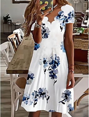 Женское мини платье повседневное платье платье для миниатюрных сарафан шифоновое платье отпуск повседневное на открытом воздухе отпуск ежедневное обычная посадка цветочный короткий рукав sweetheart