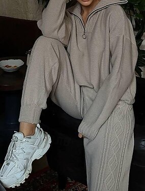 Жен. Штаны Вязаный костюм Четверть молнии Однотонный Наборы одежды Наступила зима Белый Красный Тренажерный зал Тренировки Бег Завышенная С защитой от ветра Влагоотводящие Длинный рукав Спорт