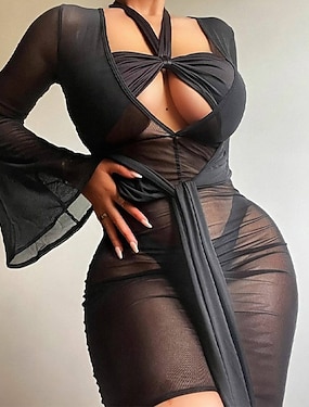 Жен. Мини-платье Черное платье Коктейльные платья Облегающий силуэт Вечернее платье Мода Современное Отпуск На выход Для клуба Стандартный Полотняное плетение Длинный рукав V-образный вырез Белый Лето