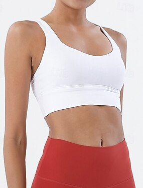 Жен. Бюстгальтер для йоги Танк Бюстгальтер для пилатеса Бельё Высокая поддержка Дышащий Крест-накрест Назад Сплошной/однотонный цвет Спорт Спортивная одежда Черный Белый Тренажерный зал Пилатес Бег