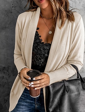 Жен. Кардиган Мода Для офиса На каждый день Сплошной цвет Рубашечный воротник Пэчворк Длинный рукав Обычные топы Вязать Официальные Офис Черный Белый Осень Зима