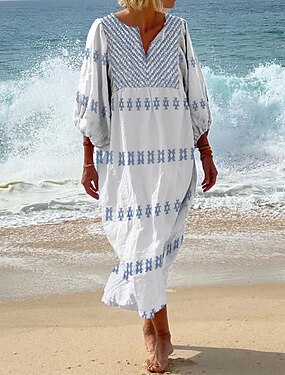 женское белое платье хлопковое льняное платье макси платье для отпуска повседневное платье современное повседневное выходное стандартный крой простое с v-образным вырезом лето весна