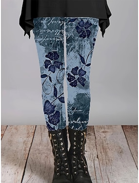 Жен. Брюки Леггинсы Уютные леггинсы Отпуск Винтаж Уличный стиль Полная длина Средняя талия Цветочный принт Графика Цветы Эластичная талия С принтом удобный На открытом воздухе Удобный Эластичность
