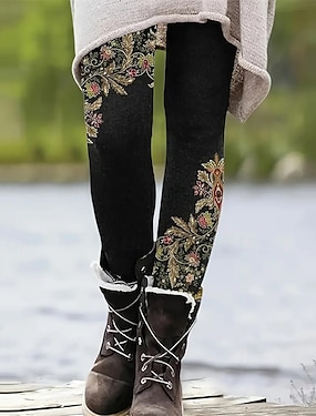Жен. Леггинсы Отпуск Винтаж Мода Полная длина Завышенная Цветочный принт Графика Рисунок Сохраняет тепло Мягкий Дышащий Эластичная Официальные на открытом воздухе Отпуск Темно-русый Красный Зеленый