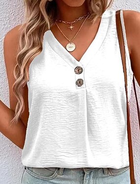 Женская майка-камисоль винтажная уличная мода с пуговицами без рукавов стандартного кроя с V-образным вырезом повседневная арбузно-красная черная белая светло-зеленая синяя