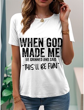 Жен. Футболка Графика Буквы Стиль На каждый день С короткими рукавами Круглый вырез Обычные топы Повседневные выходные С принтом Черный Белый Розовый Синий Лиловый Лето Весна