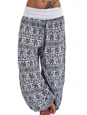 Жен. Широкие Брюки Мода Богемный Полная длина Средняя талия Цветочный принт С принтом удобный На открытом воздухе Удобный на открытом воздухе Отпуск Праздники