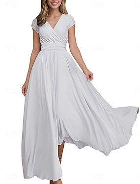 Жен. Длинное платье Платье для свадебного гостя в стиле бохо Элегантный стиль Стиль Стандартный Полотняное плетение С короткими рукавами V-образный вырез Черный Белый Желтый Светло-зеленый Лето Весна