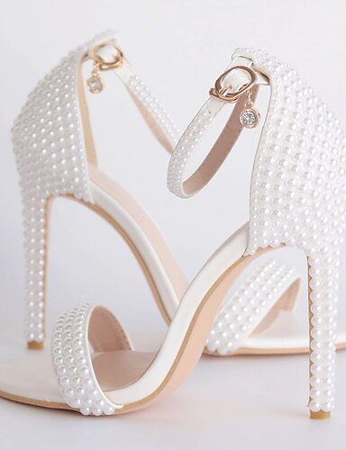 женские свадебные туфли, элегантные босоножки на высоком каблуке, украшенные жемчугом – идеально подходят для свадьбы и официальных мероприятий.