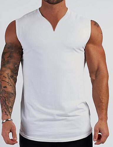 Муж. Безрукавка Майки Без рукавов V-образный вырез Весна лето Сплошной цвет Мода Оригинальный рисунок На каждый день Для улицы Повседневные Праздники Черный Белый Серый Футболка для мужчин