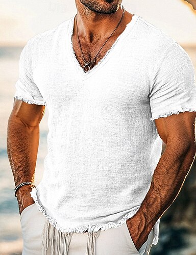 Муж. Футболка Футболка из льна Короткие рукава V-образный вырез Лето Полотняное плетение Мода Оригинальный рисунок Классический Мягкий Отпуск Для улицы На каждый день Белый Розовый Бордовый