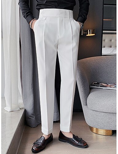 Муж. Костюм Штаны Брюки Брюки со складками Костюм Брюки Высота подъема Полотняное плетение Комфорт Дышащий Свадьба на открытом воздухе Повседневные Элегантный стиль Винтаж Черный Белый