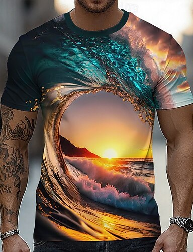 Муж. Океан 3D Футболка С короткими рукавами Футболка 3D печать Вырез под горло Рубашка преувеличены Оригинальный рисунок Для вечеринок Для улицы Повседневные Желтый Синий Оранжевый